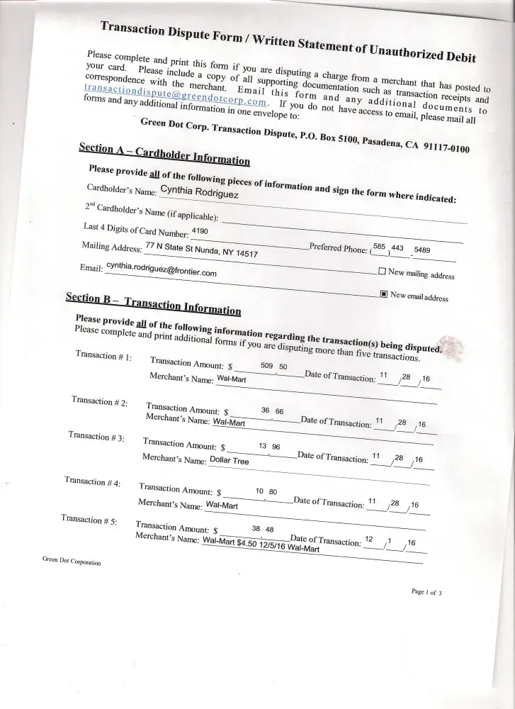 prepaid walmart moneycards processed through green dot bank