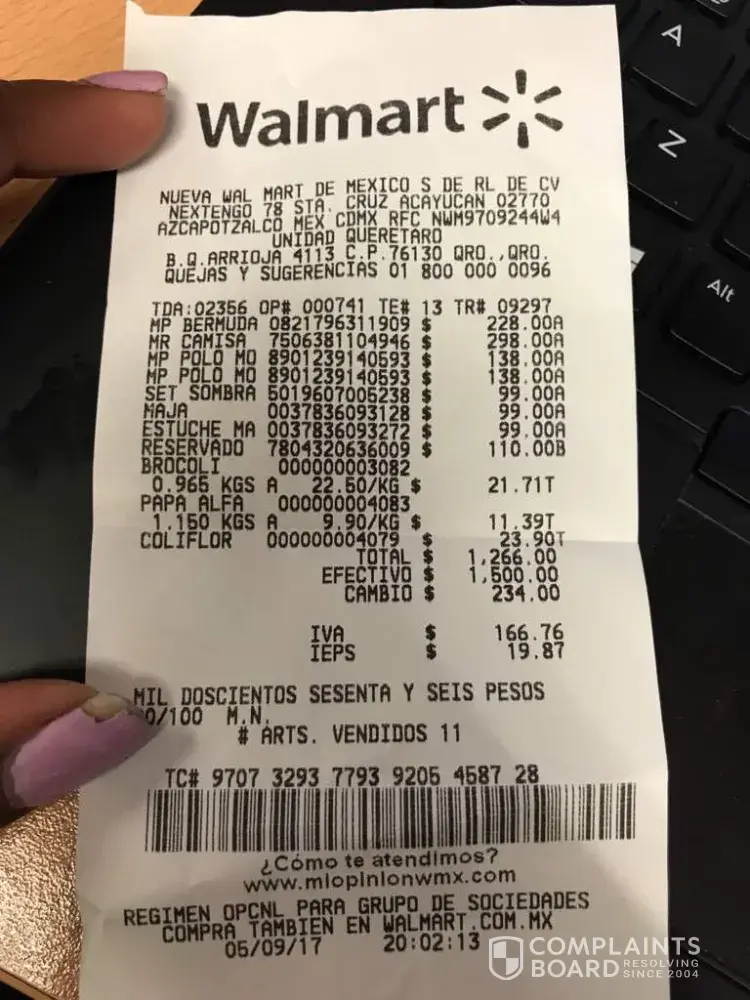 I did shopping in walmart yesterday and i bought totally 3 mens wear (1 shirt, 1 tshirt & 1 bermuda) but today when i was going through the bill i see that i was billed for the tshirt twice when i have only purchased one of it. I have attached the bill for reference. I do not speak spanish and hence its difficult for me to make them understand what is the situation. hence requesting for some help here. My email contact is [protected]@gmail.com