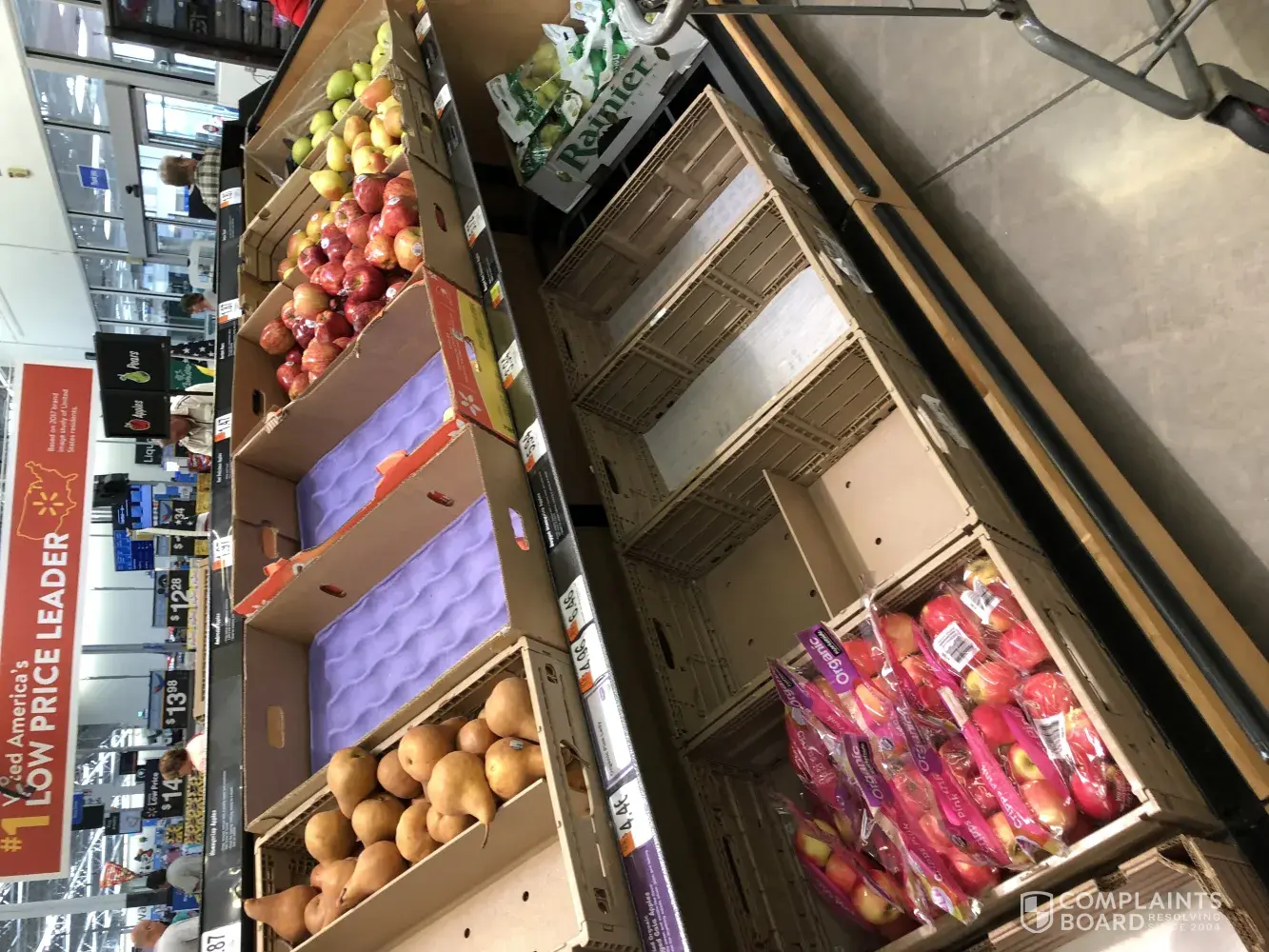 I've attached pictures of the produce department at our Walmart store in Hayward, WI on at Wednesday morning at 9:45am. It is like this ALL the time. So frustrating! The pictures speak for themselves - the employees here bring out produce but it just sits in the aisle not being stocked.