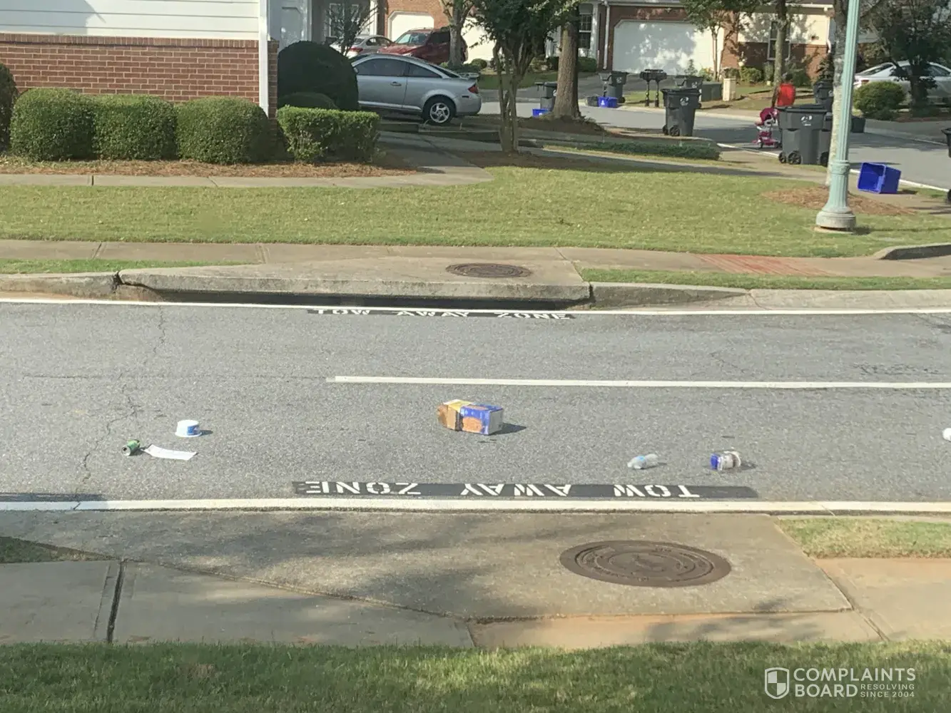 I live in Lawrenceville, GA. WM company workers picked up the trash, littered my front yard and just left without cleaning it. This unprofessional service needs to stop. Tell your workers do a better job, please.