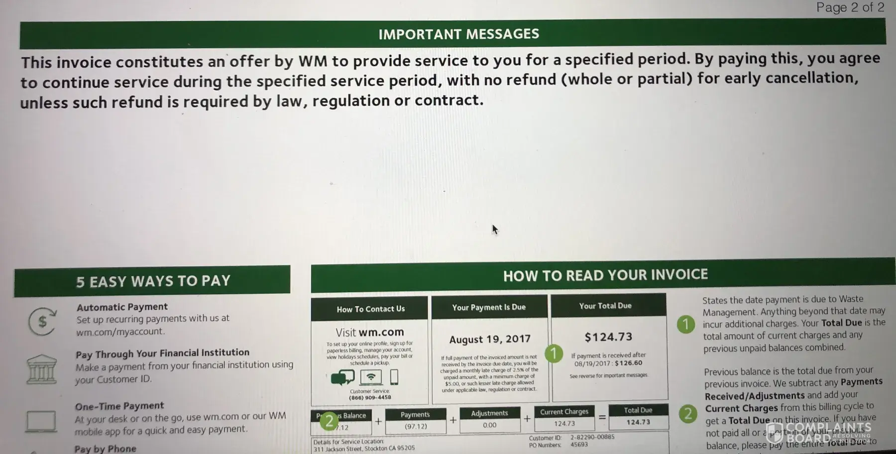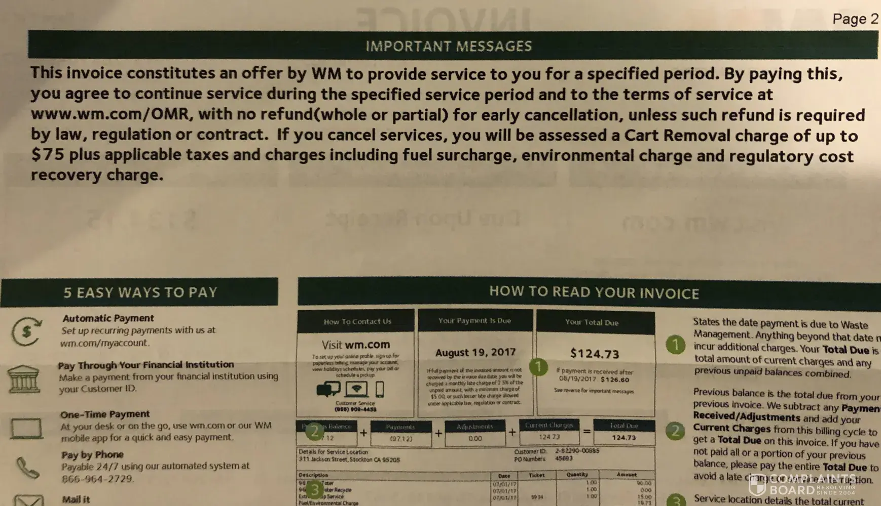 Waste Management [WM] Surprise Cancellation Fees