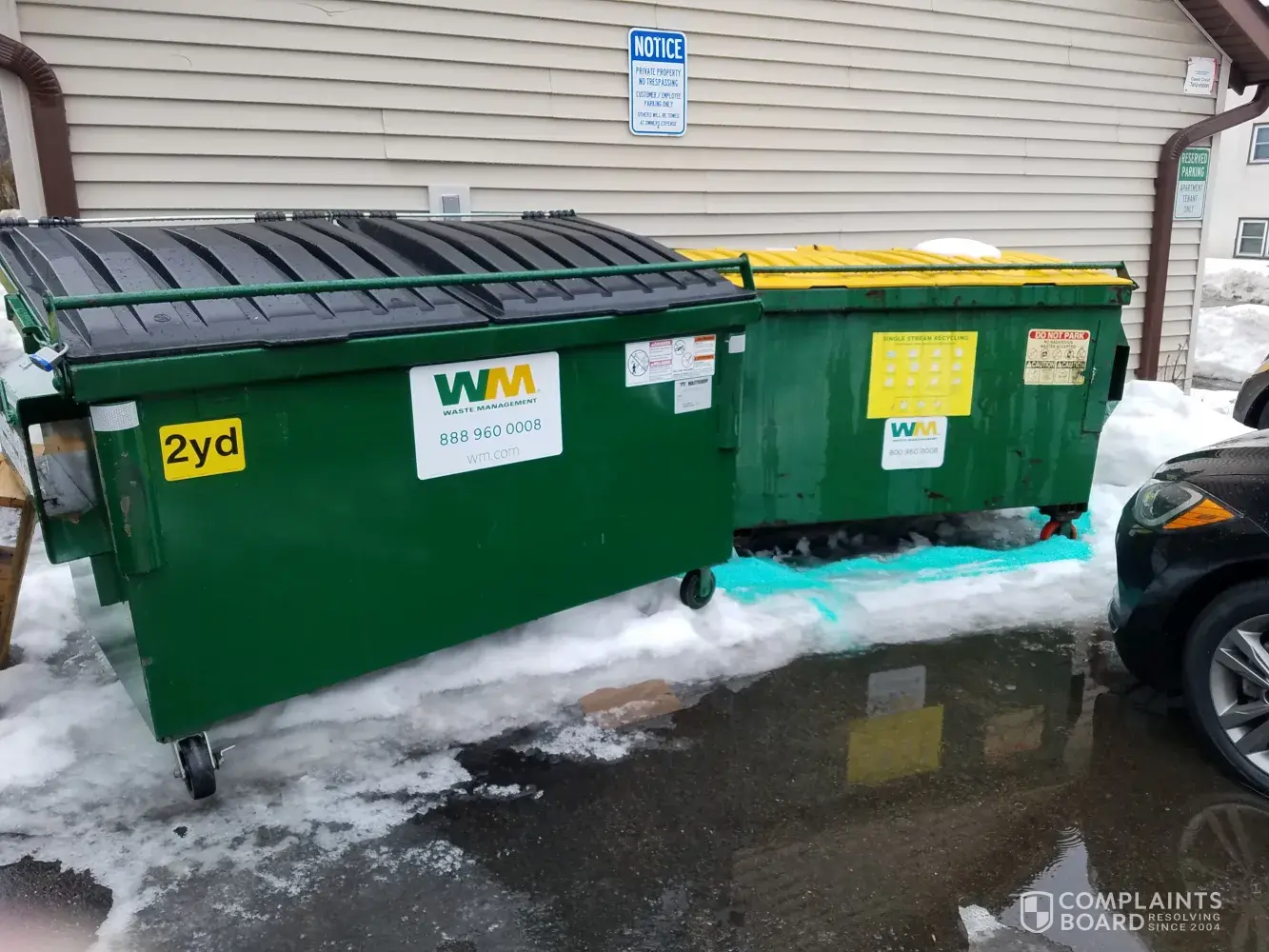 You will find multiple conversations with our previous practice manager Ali since February as well as myself over the past 2-4 weeks. Initially, we were asked to move cars and told that the driver would wait 10 minutes. We moved our cars and the driver didn't wait. That was the beginning of February. February 12 waste management took a picture and there was snow so that was understandable to not pick up. February 19 I got another picture showing that snow was in the way (less than February 12th) so we tried to shovel. We have a contract for plowing and the parking lot was efficiently plowed throughout the winter. Recently, I received a picture from the driver showing ice and he said he couldn't get to recycling. The garbage can, which is right next to recycling, was consistently picked up during this time. Recycling is every other week and garbage is every week. I spoke with the office who recommended I put salt around the recycling bin. I did. Photo enclosed.