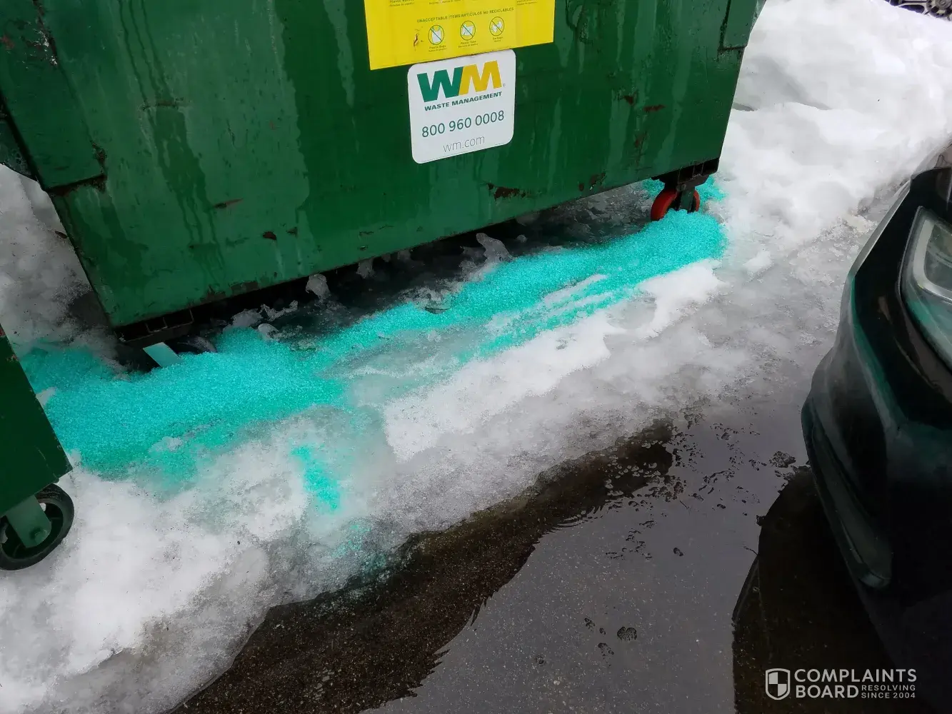 There are also photographs on file at Waste Management showing snow and ice problems, not just cars.