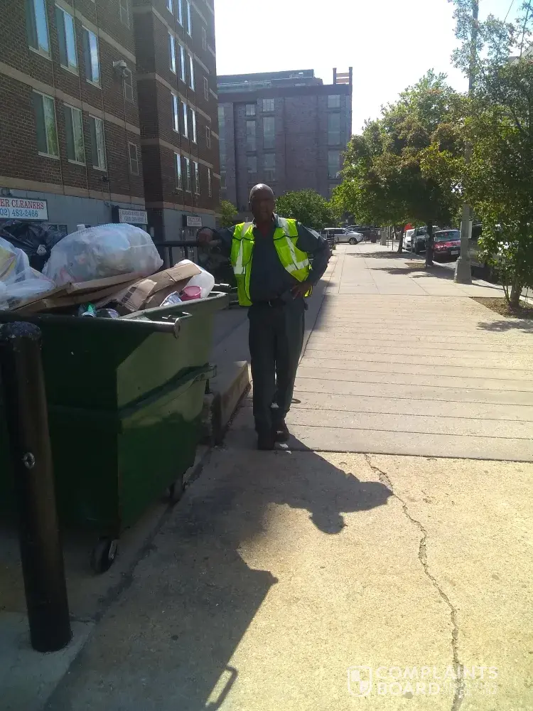 I live at 1330 7th St NW Washington DC 20001. Thursday May 16th at maybe 3:15 or after my sister pulls up on 7th and O St. On the side of 1330. To pick up her child. As I'm coming out. The trashan driving say can u move. I say u rude and u have to wait a minute while I put her child in the car. He States he's on the clock. Ok well there is no sign saying no parking here. He say we'll move up so I can dump the trash. And he stands there while I'm putting the baby in her seat. Very scary. So I say u very rude he says... So. And gets in the truck. His partner says I can't work with him you should call. This is him.