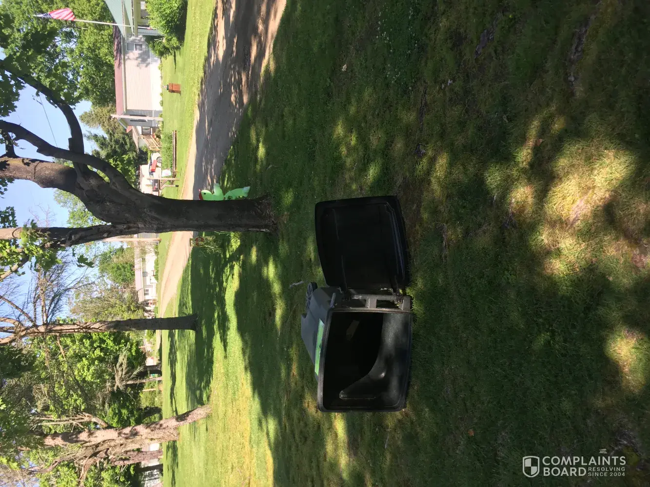 6/3/19 7:35am no pickup ran across field to ask two drivers. (red dot) Did I say now 2 people in can! I did! The driver younger reddish beard said not a word. I asked don't you like my trash can? Not a word!