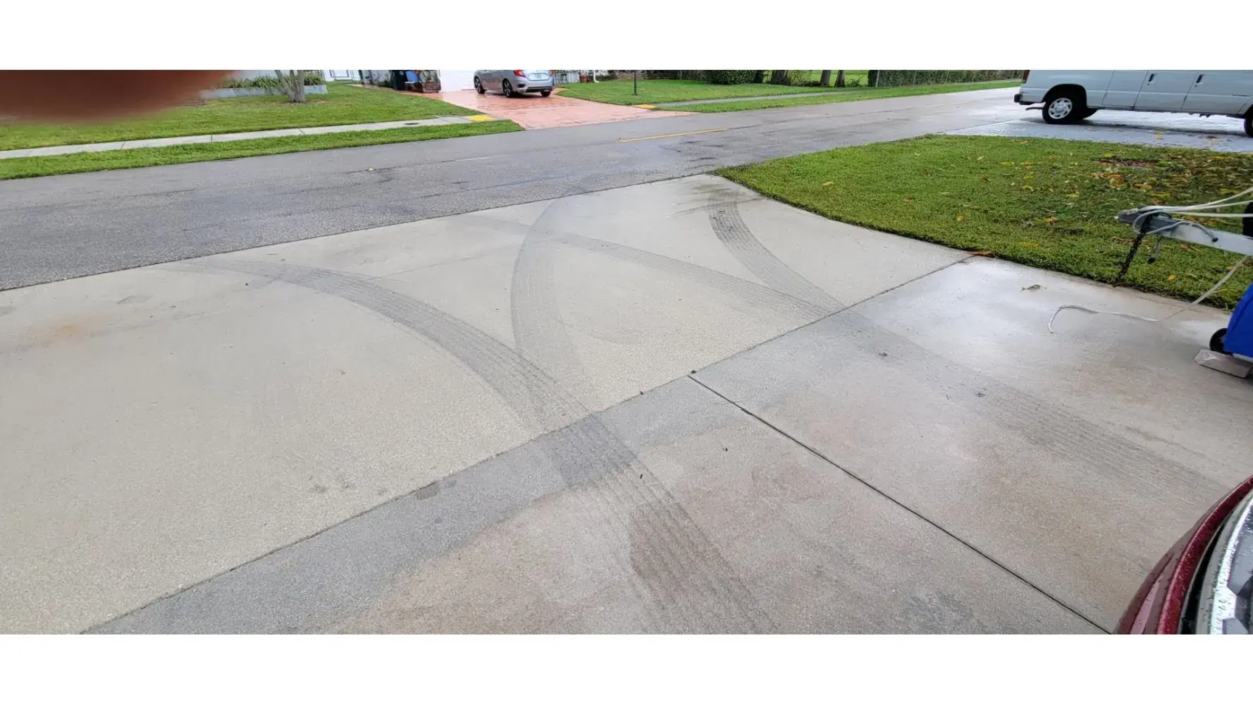 I live on a dead end street near the end. There is no room at the dead end for large trucks to turn around. On several occasions since moving here, the trash truck driver for Waste Mgt. has used my driveway to turn around. When doing so, the truck tires leave dark black tire tracks on the concrete which is difficult to remove. Also, the Garbage trucks are very heavy and if the drivers continue to use my driveway to turn around that can create cracks and crumbling to concrete leading to permanent damage. This happened today on July 22, 2023. I have a security camera recording of todays incident. Unfortunaly, Waste Mgt is not open on Saturday to take a complaint by phone or online. I will call on Monday.