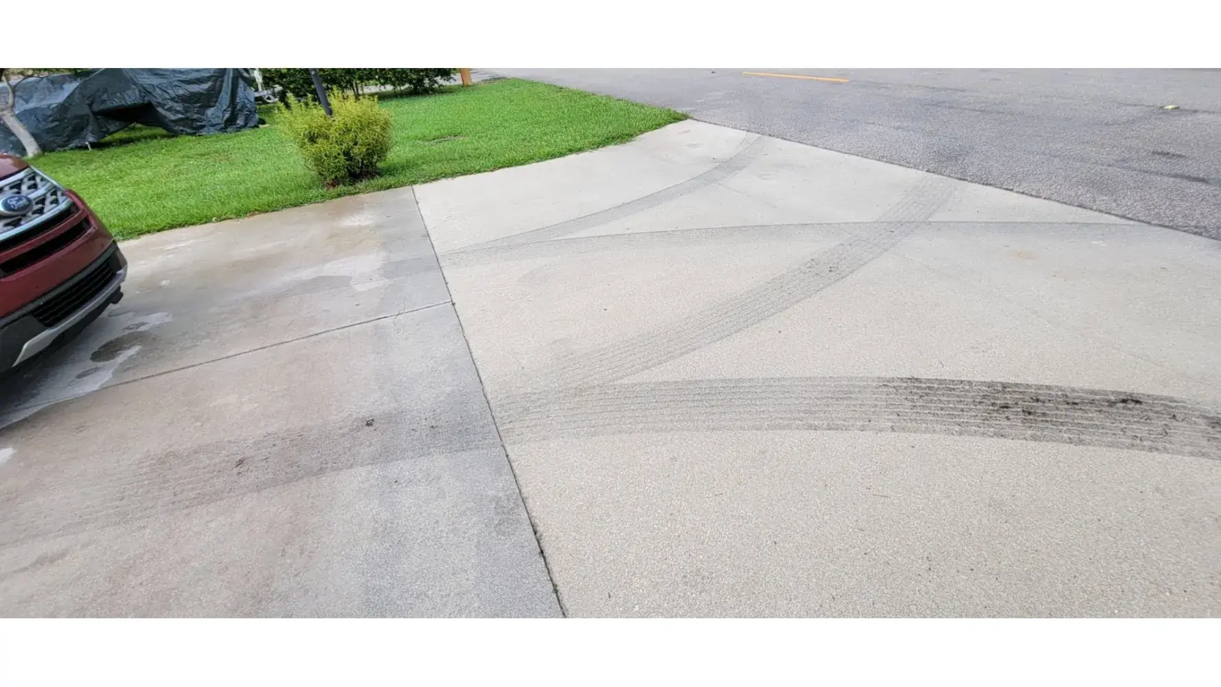 Desired outcome: I would like Waste Mgt to advise their drivers not to use my driveway or other customer driveways to turn around with out explicit written consent. I also want them to have my driveway professionally cleaned(pressure washed).