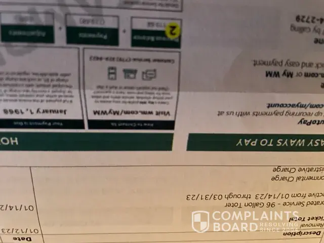 Waste Management [WM] has left an official reply on this complaint.