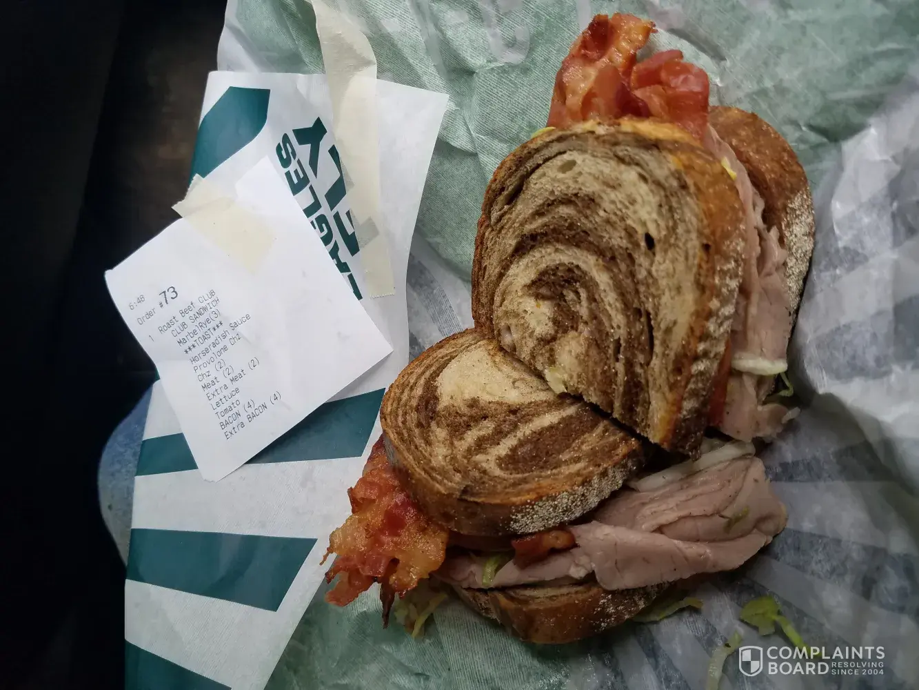 Ordered a turkey hoagie with specific toppings such as pickles and bacon which I paid extra for. When I open my hoagie it was just turkey and lettuce. I have photo evidence of my slip and the messed up hoagie as well. I feel the need to complain about this because this is an everyday thing at this wawa. The greater issue is this wawa itself. The food order...