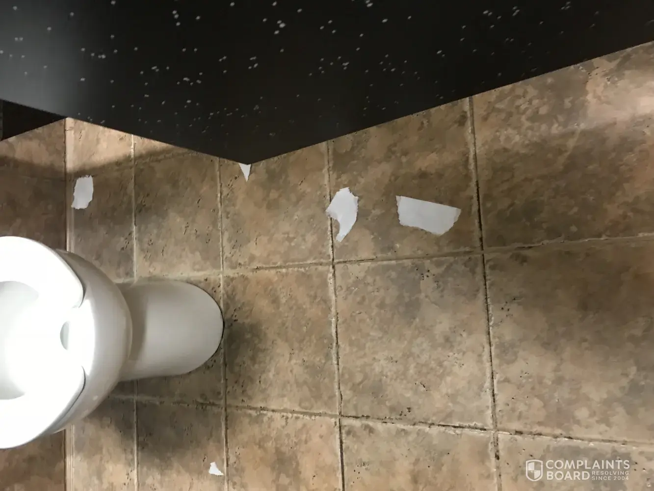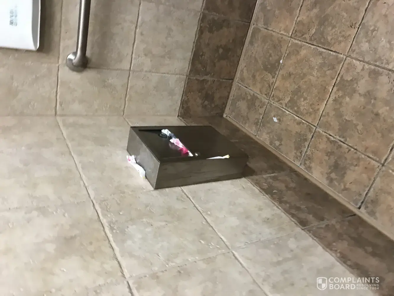 I do have pictures to show The unkempt restroom. Toilet paper on the floor scattered through out the stalls, the toilet seat were not cleaned inside and out, the back area of the toilet was nasty. The trash bin was overflowing in the common area and the stalls. I felt a sign should have been posted "USE AT YOUR OWN RISK"