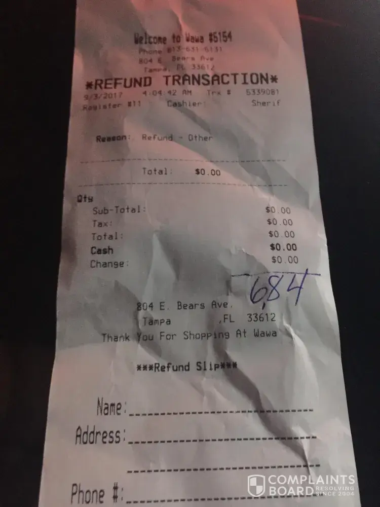 I am writing this in light of an unfortunate event that occurred regarding your Wawa staff. I believe an investigation of specific personnel is required for discrimination of religious belief and racial profiling, which resulted in threats, verbal abuse, stealing my money, and falsification of information.