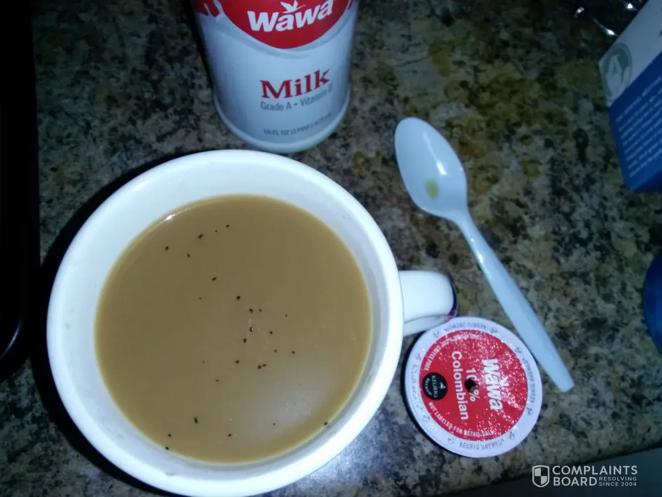 I am a very loyal customer to my local wawa mostby employees know me by name, I am in there almost everyday buying coffee, I also buy their kcups! I have never had a problem with the kcups in the past I recently bought two boxes and am now having issues. I have had to throw out 7 cups of coffee now due to majority of the coffee grounds because in the cup, it's not just a few it's about half of them! When I use my other brands of hot chocolate and cappuccino it does not happen so I've ruled out it's not my keurig. Your kcups are not cheap but my husband and I love your coffee so much we don't mind spending the extra couple bucks for them but with this happening I have almost thrown away a whole box I've had one cup out of all 8 I've used brew normally. I took pictures of the last two cups, most of the grounds were all on the bottom.