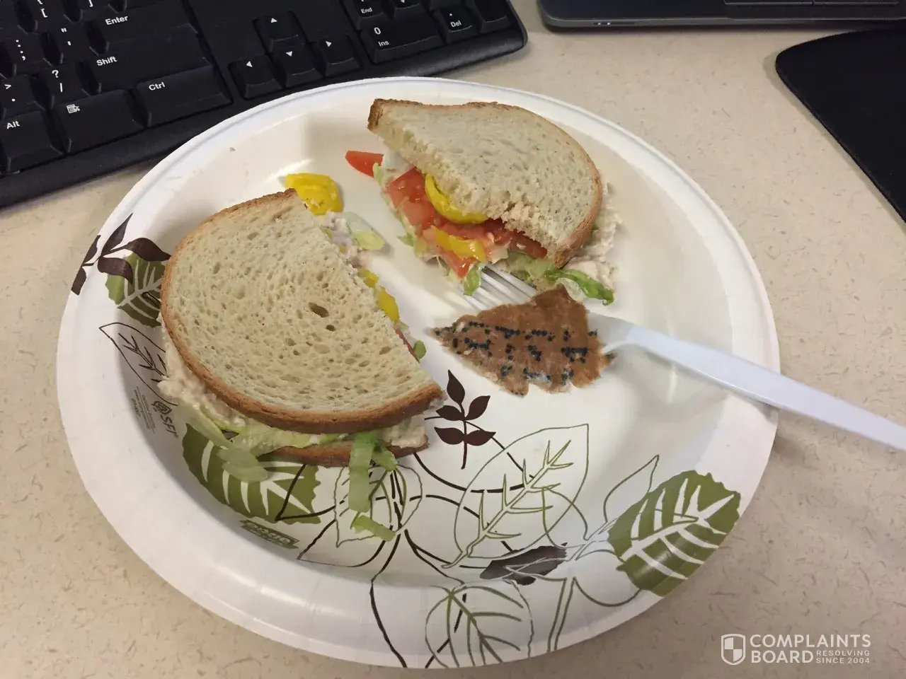 1/20/17 - West Chester, Route 202. I purchased a tuna salad sandwich. Took first bite and bit into a rather large piece of paper. Extremely disappointed on Quality Assurance. I frequent Wawa's on a regular basis and have never experienced an issue such as this (see attached pictures). How can I be assured this will be addressed and not happen to me or any other consumer in the future?