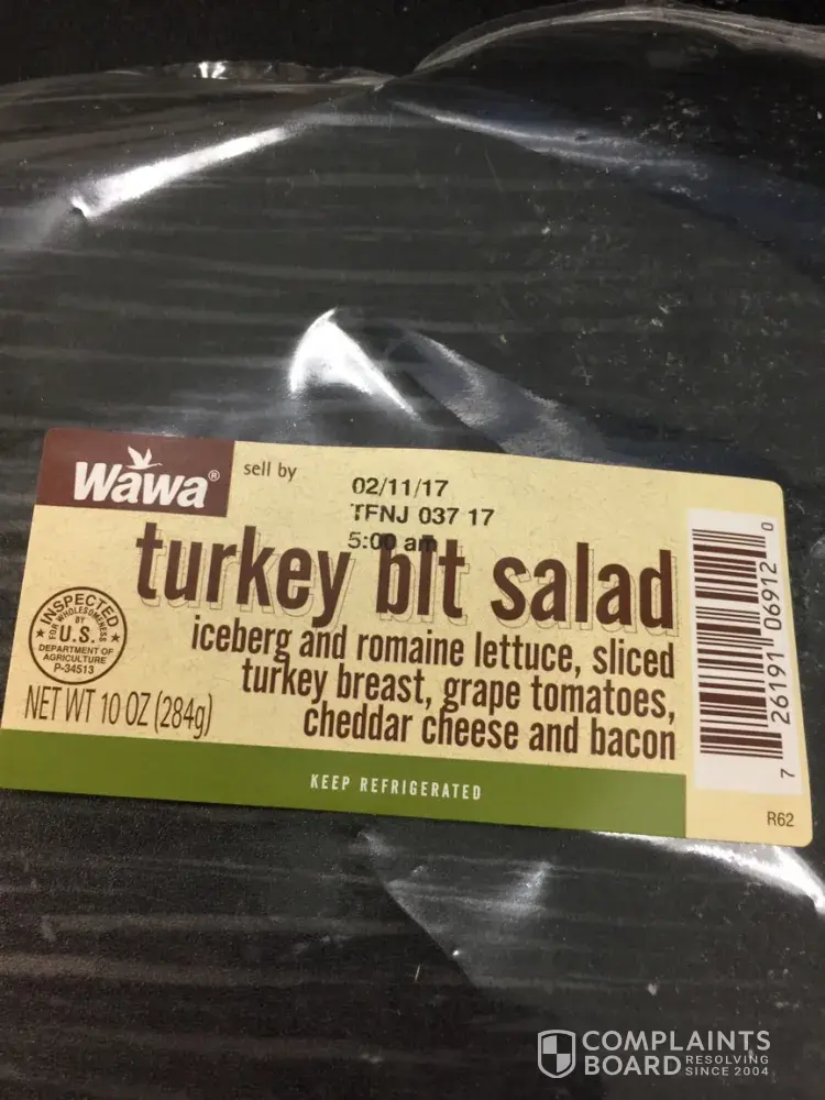 I purchased a Turkey bit salad today and after eating 3/4 of it I found a larger bug resembling a roach in the corner. The bug was camouflaged because of the color of the container. The store number is 337. Cant leave work to take it back and to be honest I eat them a lot but will not purchase another premade salad again from any Wawa.