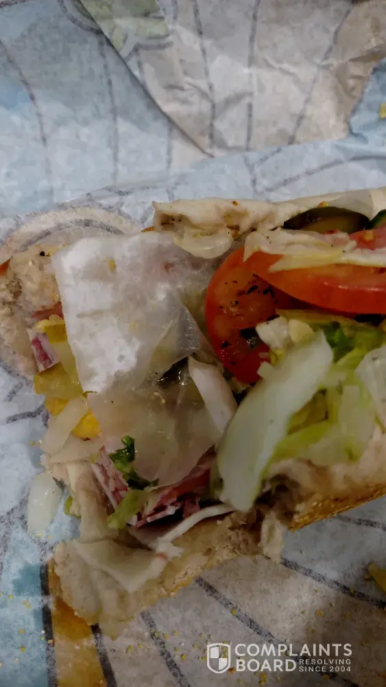 I went to our local WaWa last evening 3/7/16 @8:30 pm. The store is located 45 minutes from my home. I ordered a macaroni and cheese and an Italian Sub to take for lunch the next day. When I got to the middle of the sub their was a square piece of paper 2x2 size mixed in with the lettuce and condiments. I thought it was a big piece of lettuce and bit into it. I would like my meal replaced for the next time I am in that area. I will also be contacting the store. I am throwing the rest of the sub away as I am afraid of what else I may find in it.