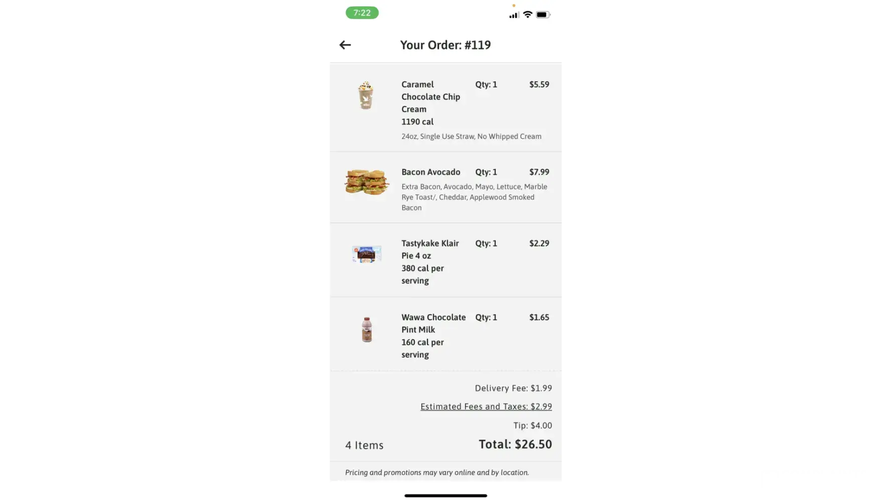 I have ordered food from there time and time again and there's always missing things they forgot my ham this time on my ham egg and cheese sandwich I like the food but this many bad experiences really turns me off on Wawa