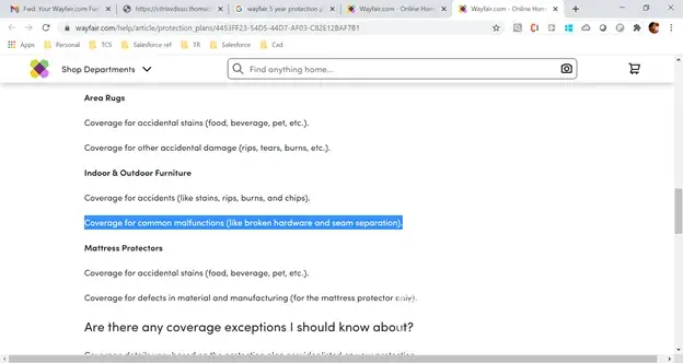 Wayfair should take responsibility for the quality of product and selling us an insurance basically which does not cover anything.