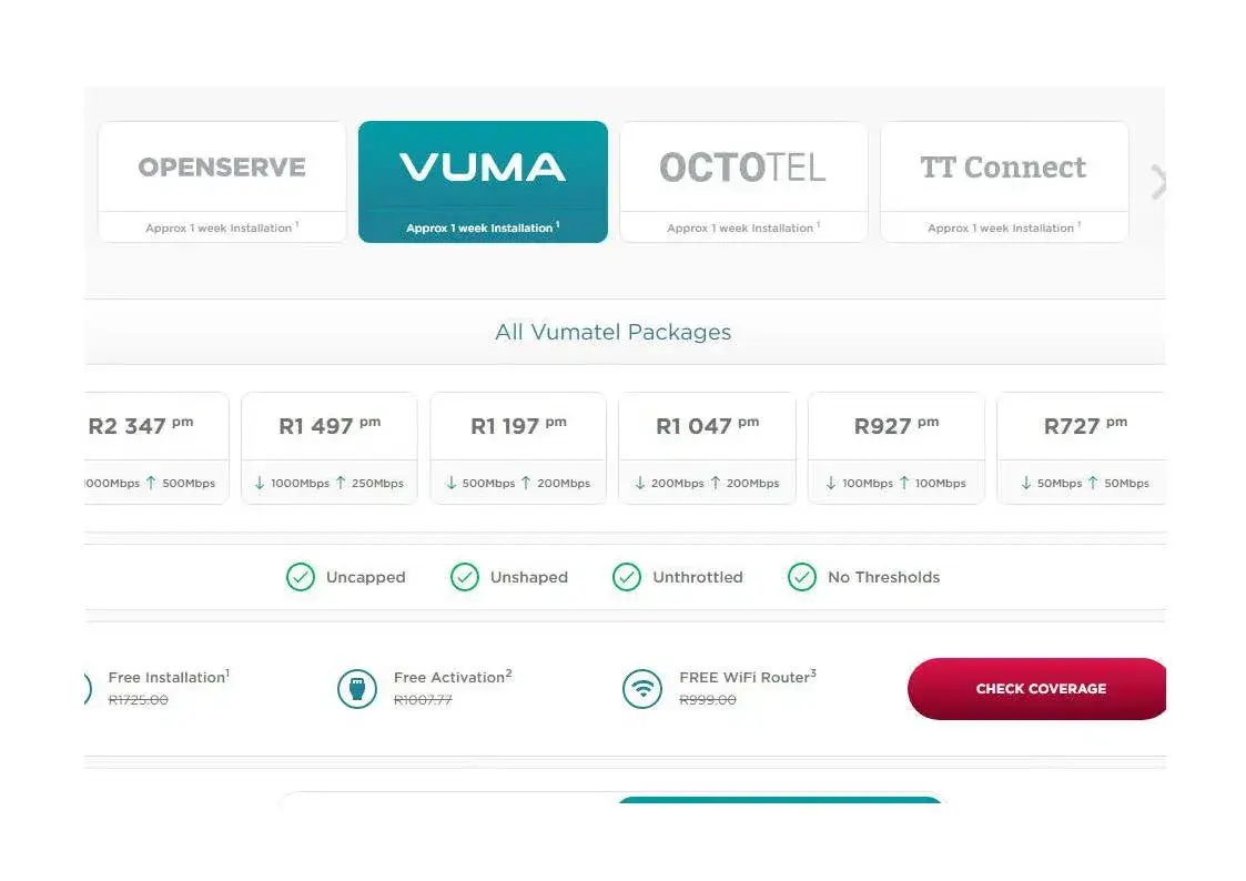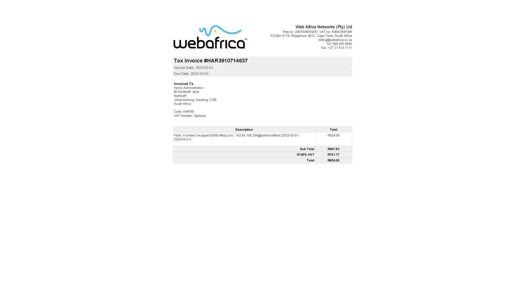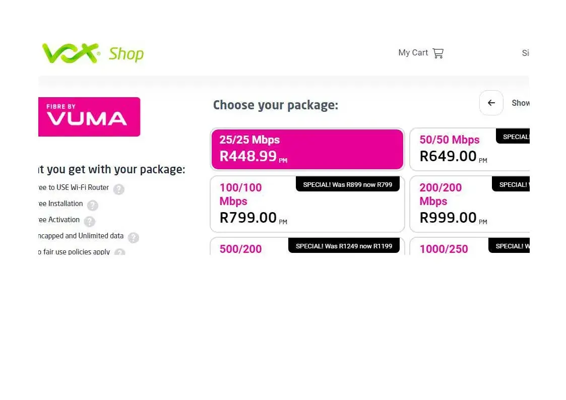 Recently my monthly bill for a 50/50 Fibre line went up to R929pm. Vox charges R649pm and Afrihost R727.