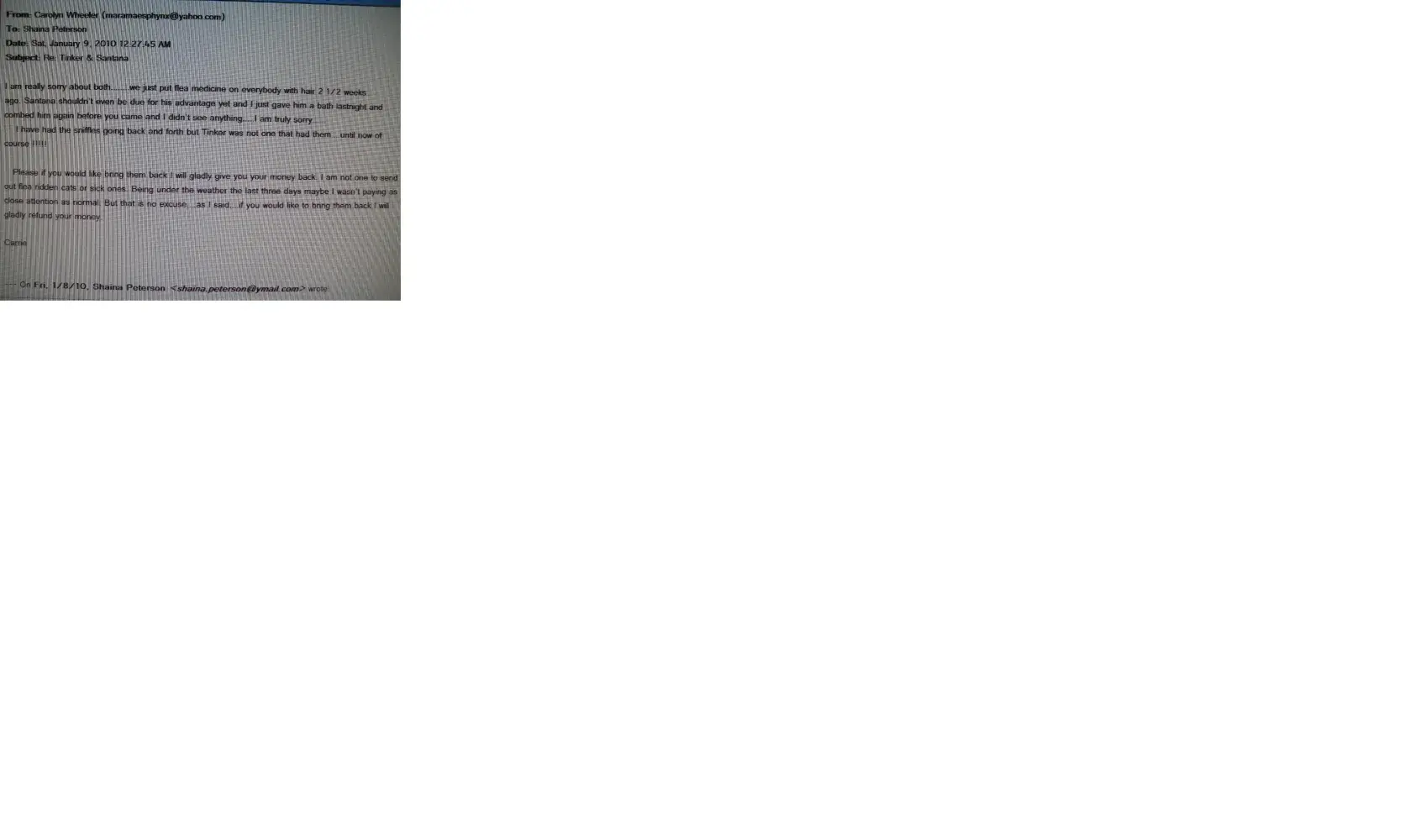 And here is the last e-mail that i wrote you, about returning the kitten, and you refused to do that.