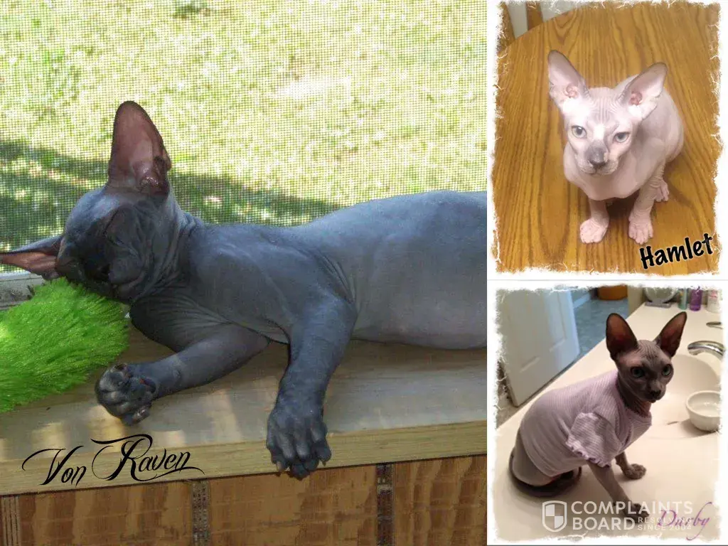 I bought a $1200 sphynx from here in dec 2011 and he has a virus that is upper respiratory and is highly contagious to other cats! So depressing since I was going to breed him. Had to neuter him and he still has his upper respiratory virus that is not curable. I can only foster dogs now and not cats. Wish I had known about how bad this breeder is.