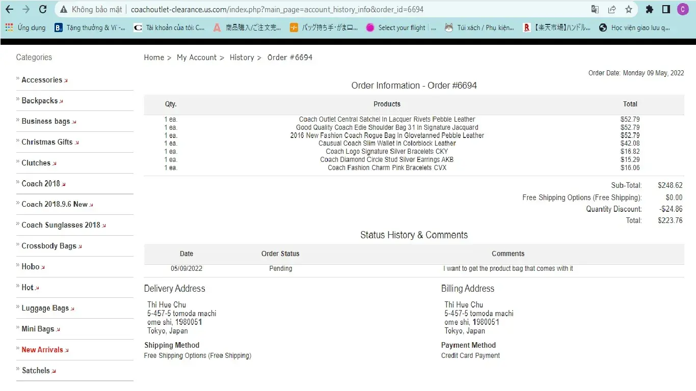 Hi admin, After researching information about this product and website, I found it very similar to coach's homepage and thought it was an old model merchandise disposal site. So I proceeded to order and paid by visa card successfully. However, it's been 11 days now, I still haven't received any information from the website about my order. I then emailed a...