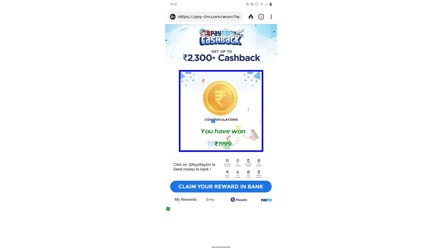 Today I came from college and I saw a message on my phone screen showing reward u won 1999 when I copied link and browse in a safe browser then pop window that u won 1999 and claim now and back in your account whether no account with that mobile no... After that I clicked in that no and show please link account 😂 Such types frauds are common in India nowadays https://pey-tm.com/won/?winners=74541555255666333514