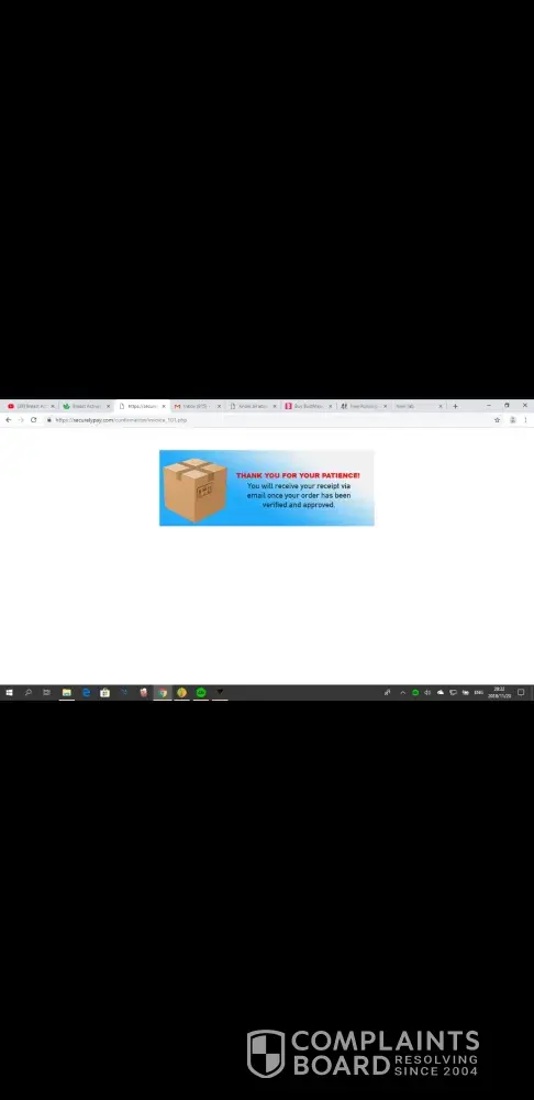 21 September 2020 order and shipment notice received confirming another transaction (not approved)