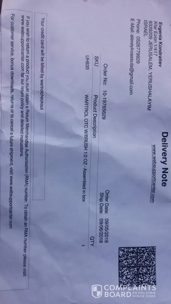 WebSupportCenter.com I ordered your product. one time, one piece.