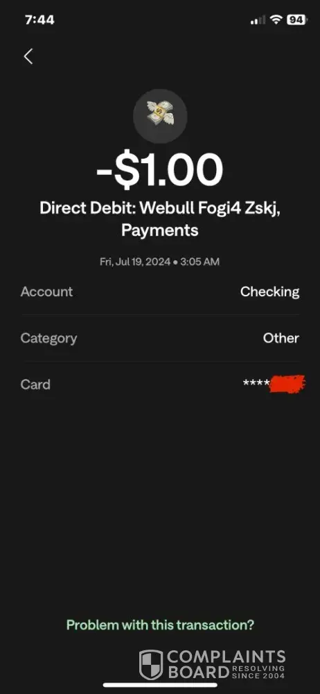 I recently started using Webull and used their third party verification system “ Plaid†to instantly link my checking account. When I attempted to process a deposit into Webull I authorized them to pull from my checking account. Webull charged my savings account and the transaction was declined.