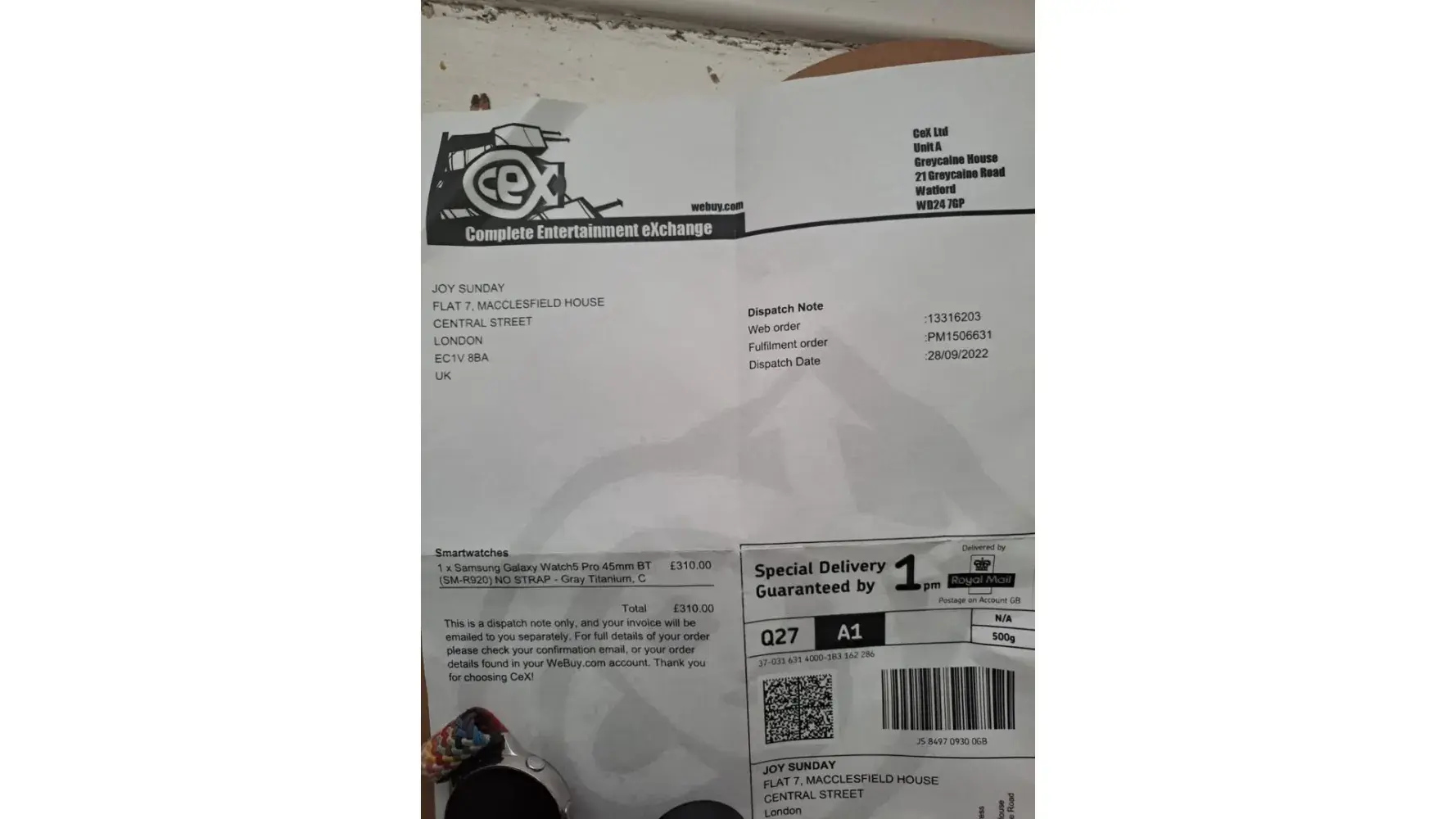 I bought Samsung galaxy watch 5 Pro online today what I got is not what I ordered my order number is [protected]