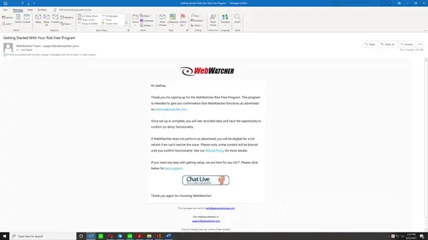 Do not be tempted by "Risk free" and "Money back guarantee" posted all over the Webwatcher site. Instead, look at the very end of Terms and Conditions, then link to their Refund Policy buried even deeper on the site - there's a reason why it's buried In all of the legal ease. I wish I saw these comments before entering my credit card. Now $129 out the door and nothing to show for it. RUN. DO NOT BUY! Plenty of other more reputable and customer friendly options. Customer support of absolutely no help.