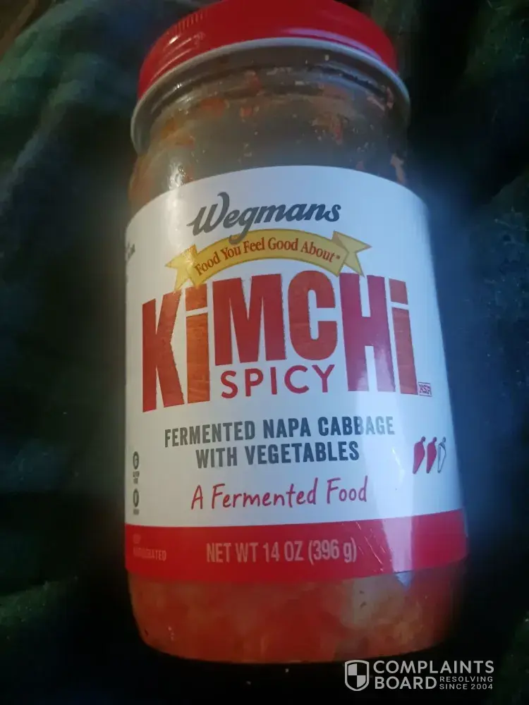 Yesterday, March 14th, I bought a jar of Wegmans kimchi spicy fermented napa cabbage with vegetables. After the first bite, I almost got sick. This must have been sitting in the refrigerator for months, if not longer. There was no crispiness as there should be and it was just like wet cabbage. It was disgusting. I lost my receipt so I didn't or couldn't...