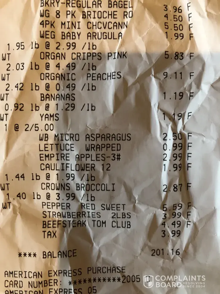 Purchased organic peaches for $9.11 and peppers for $5.59 on 6/15/18. I have receipt and photos of moldy fruit and vegetable. I've been forced to shop at the Perinton store now that organic bulk has been removed from the Canandaigua store. As a result, there has been quite a few circumstances of moldy produce. I reached out after this happened a couple of times. I did receive coupons to cover costs however its happened again since then.