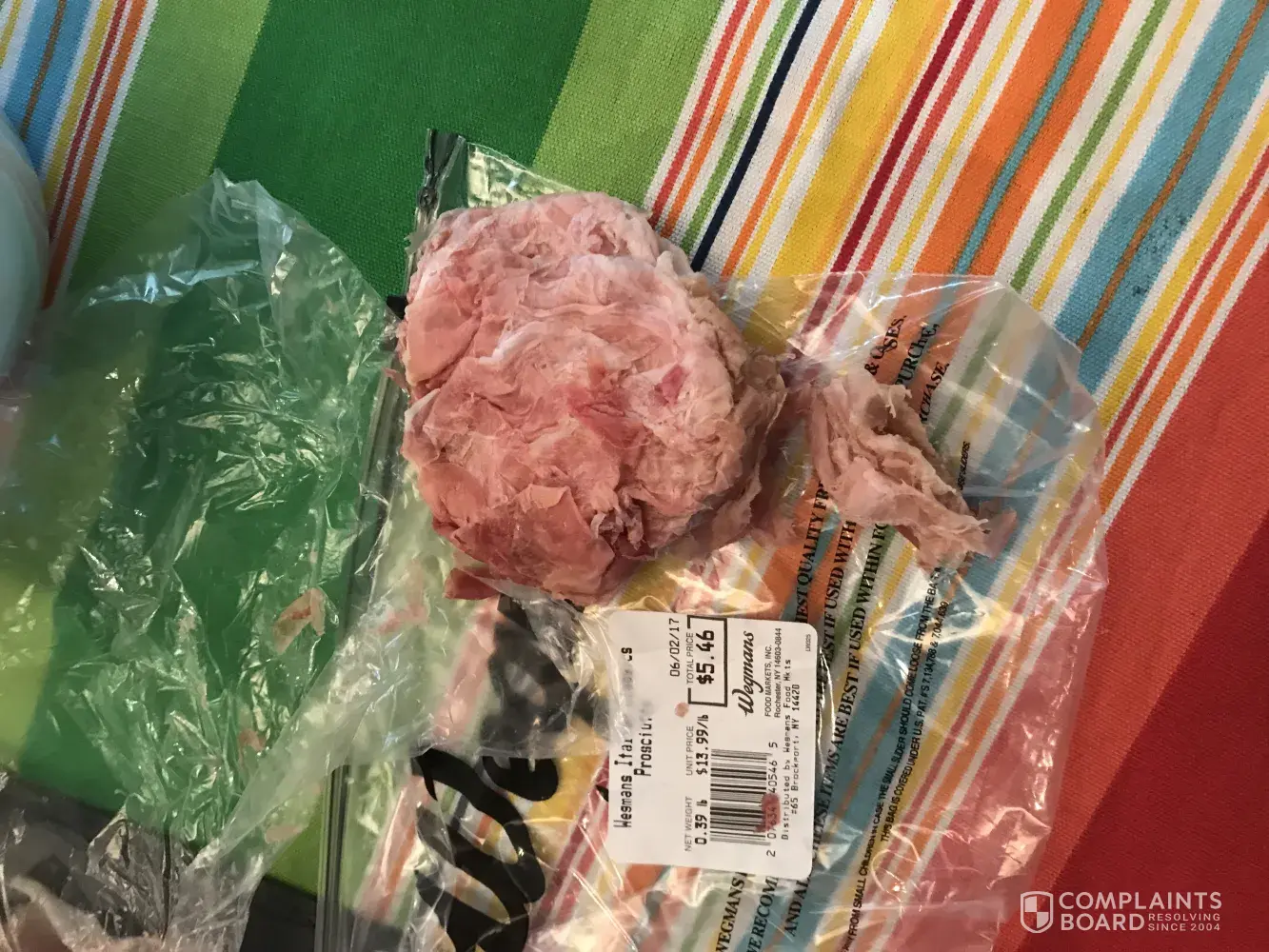 I was at wegmans on Friday the 2nd in brockport, ny at the deli I ordered a some el Cerritos Serrano ham, when I got home the package was just a ball a ham not sliced and placed sheets of paper. It turned into a ball of meat not good enough to serve to our guests. I have pictures if you would like to see what I was given. I would think when you are trained to cut deli meat that you would package it like you know what your doing.