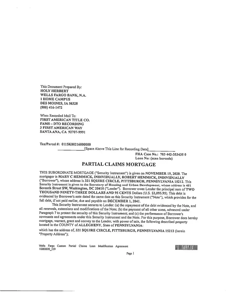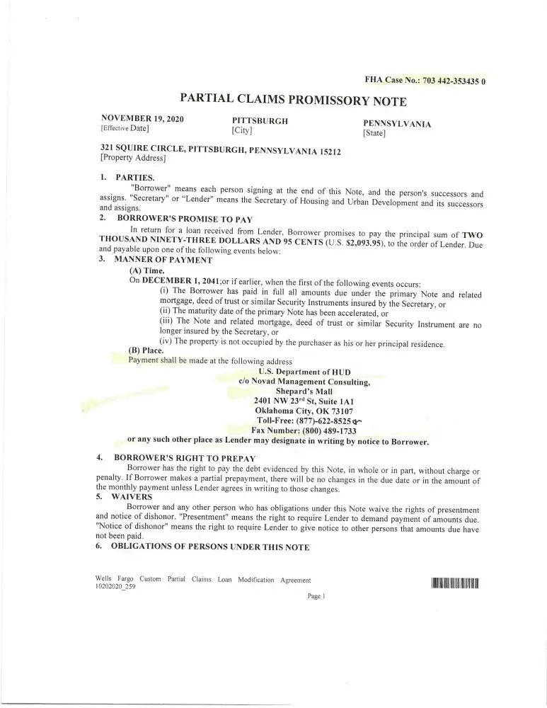 We hope to sell our house with a closing date of 02/26/2021 - this partial claim has to be satisfied to clear the title.