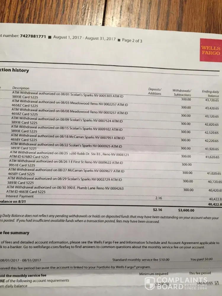 We have had this bank for the past three years since moving here and it has been a horrible experience we have had incorrect balances, which incurred overdrafts fees incorrect transactions and missing money and when speaking with customer service no valid reason just a run around transactions are being held on purpose to create incorrect balances to create overdrafts I will never do business again with Wells Fargo and I will make sure I inform everyone about this bank