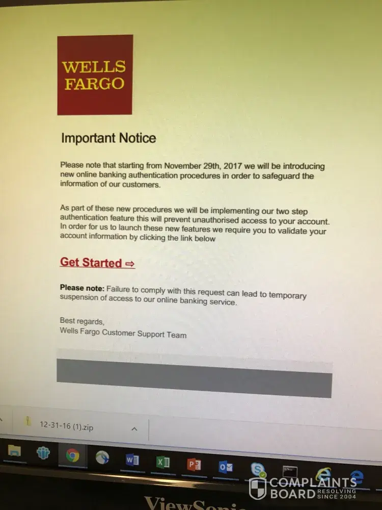 So I receive a letter by email on Sunday, December 17, 2017. It is in regard to new banking procedures, to go into effect November, 29, 2017.
