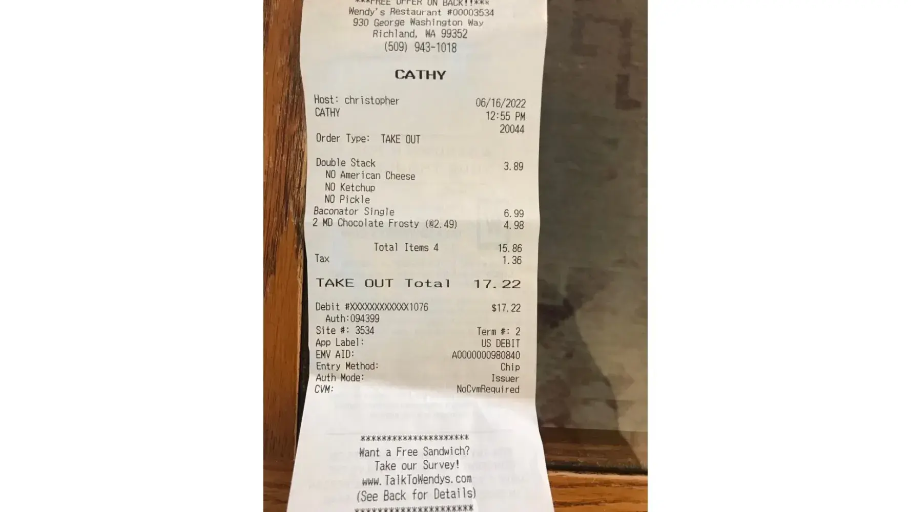 On Sunday(Father's Day) June 19, we walked in Wendy's. We stood at the