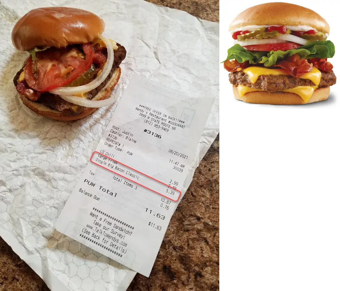 Third time in two months. My drive-thru order was wrong. All three times what I got was not what I paid for and what I got cost less than what I paid for. Then today the large chili did not have the lid snapped down so before I got home I had chili all over the floor of my vehicle. The "Big Bacon Classic" burger I got was not much more than a simple...