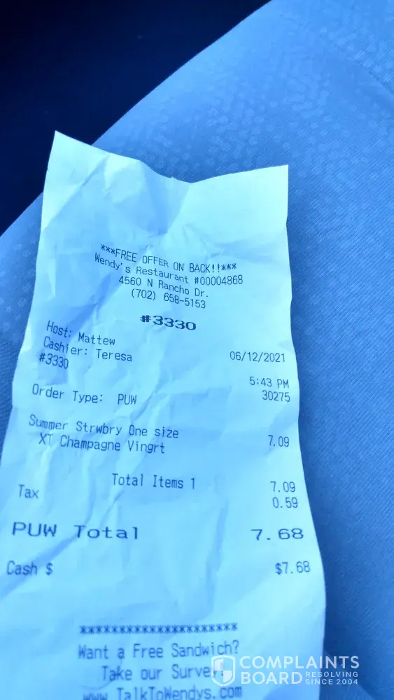 06/13/2021- 9:13 a.m. I returned to Wendy's and spoke to the morning manager, Elise, I showed her the order along with the receipt. She apologized and asked if there was something else, I would like, I stated no, just my refund. The morning manager stated she was going to talk to her employees because the salad also did not have enough lettuce in the order.