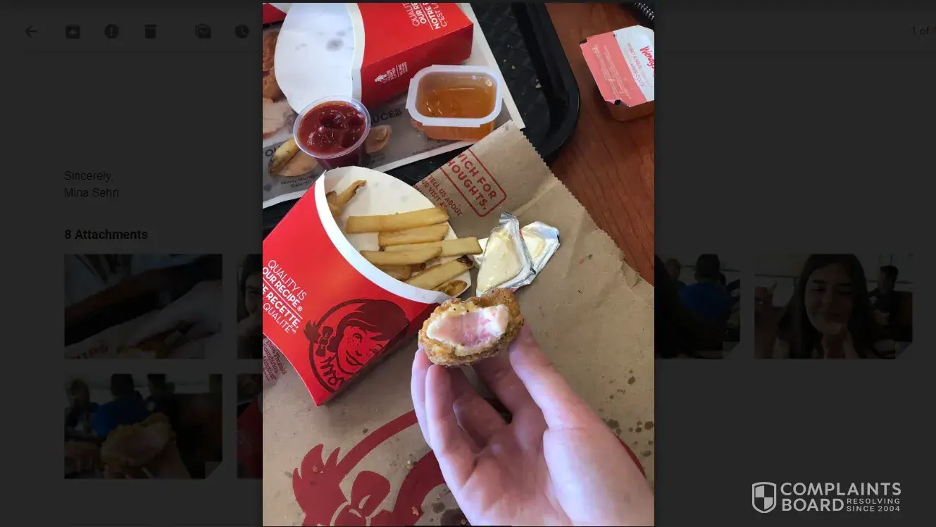 My friend and I were at Wendy's in Oakville, ON Canada and we received sub-par food. The chicken was clearly raw, and very pink in the middle. Now we are afraid of the obvious repercussions of the under cooked meat, such as salmonella poisoning. This happened on October 10th 2018 and this event clearly demonstrates the lack of concern for health and safety standards. This is completely unacceptable, and as a well-establishes chain restaurant, this is something that we never expected to happen. We are asking for a full refund, as well as reassurance that the problem will be fixed, or that location will be investigated due to improperly regulated health and safety protocol.