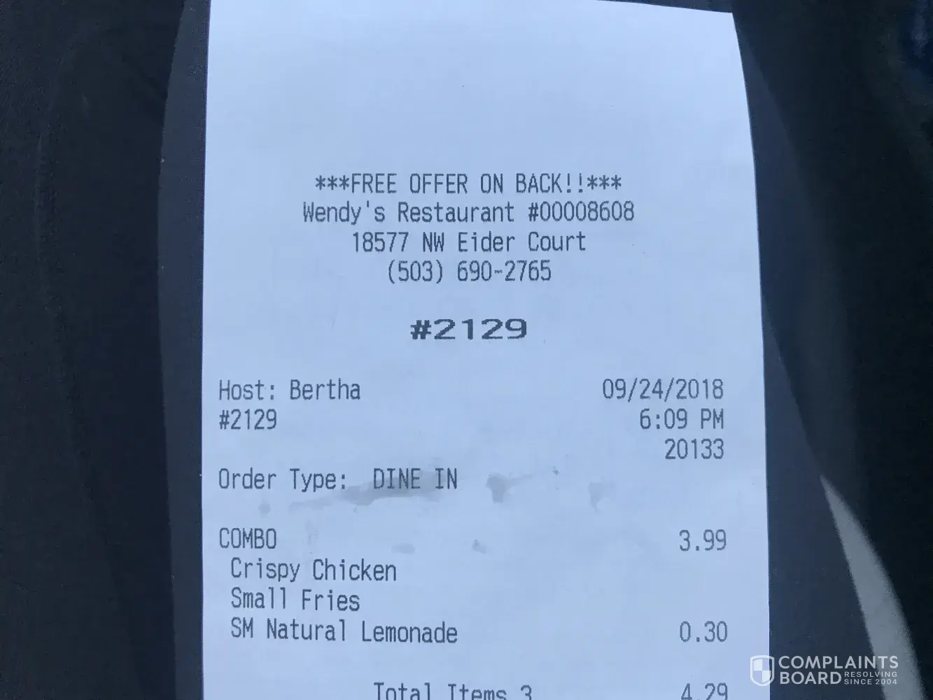 Unless we are compensated for our inconvenience as well as our stomach problems after consuming Wendy's food, we will no longer be visiting ANY Wendy's locations, neither will our friends and or relatives.