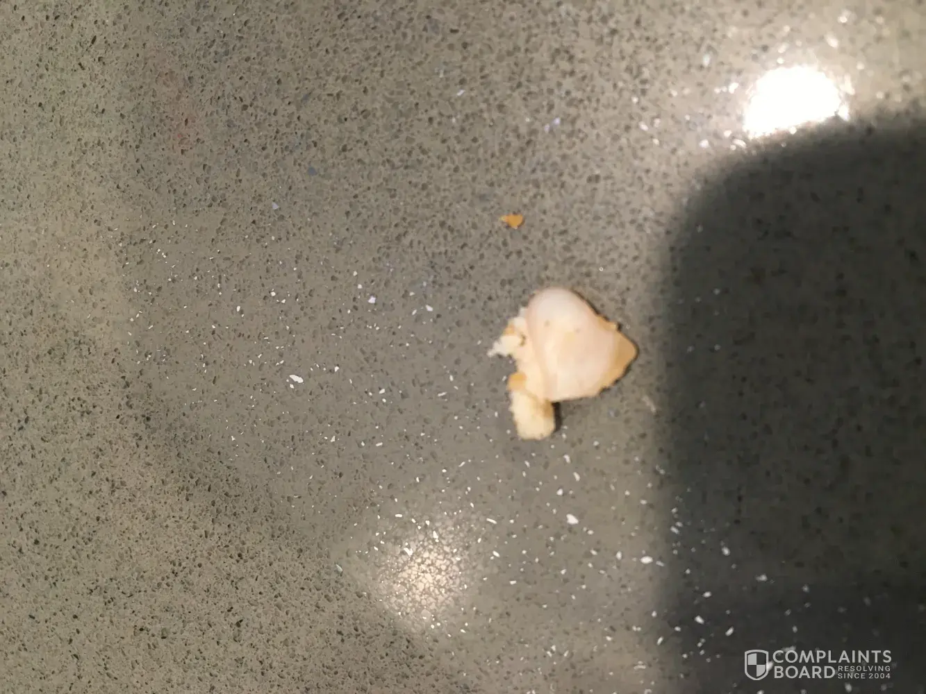 I was not given a receipt when I paid trough the drive through. It was around 4:45 PM on Wednesday, September 27 at 4S Ranch Common’s 10536 Craftsman Way San Diego, CA 92127. I went through the drive through and ordered 20 chicken nuggets and a baked potato. Me and the 4 year old that I babysit we're eating chicken nuggets when I bit on something hard as rock and thought I had cracked my tooth. I pulled it out only to realize that I had chomped down on a TOOTH. What if the girl I babysit for was the one who chewed into it? What if she choked on it? This is unacceptable and disgusting.