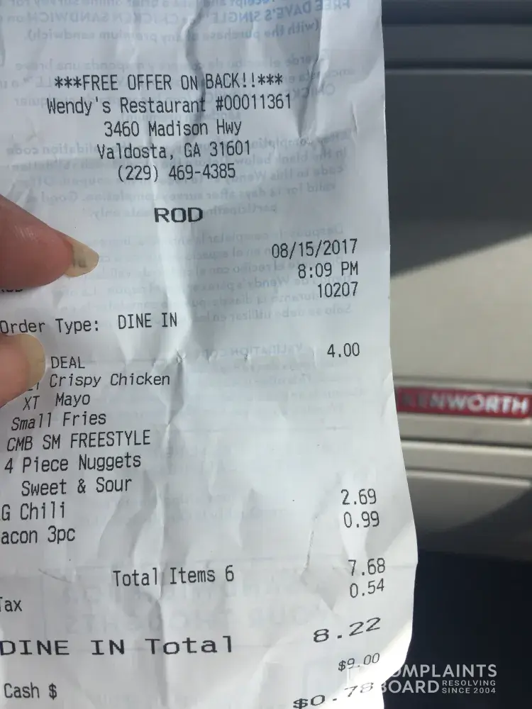 Good Morning my name is Angela Love and I visited your Wendy's located at 3460 Madison Hwy. Valdosta, Georgia on lastnite and the baddest experience ever after driving 8 hours all you want to do is relax and have a nice meal. Not at this Wendy's Customer Service need to be worked on here with your manager who would not say her name ok I order my food I ask can I order a three slices of bacon for my chilli the cashier say .99 cent I say ok so I get all of my food walk to the truck sit down to start eating and no bacon in my chilli walk back in and tell them it's not in it the manager it is in it because I made it me I no bacon ground beef and beans and bacon is not in it she made me three pieces of bacon and put it in a potato bowl with no top gave it to me and said she is done I said wow can I have a top she never gave me the top great Customer Service is the Key I can be reach at [protected] or my email is [protected]@icloud.com