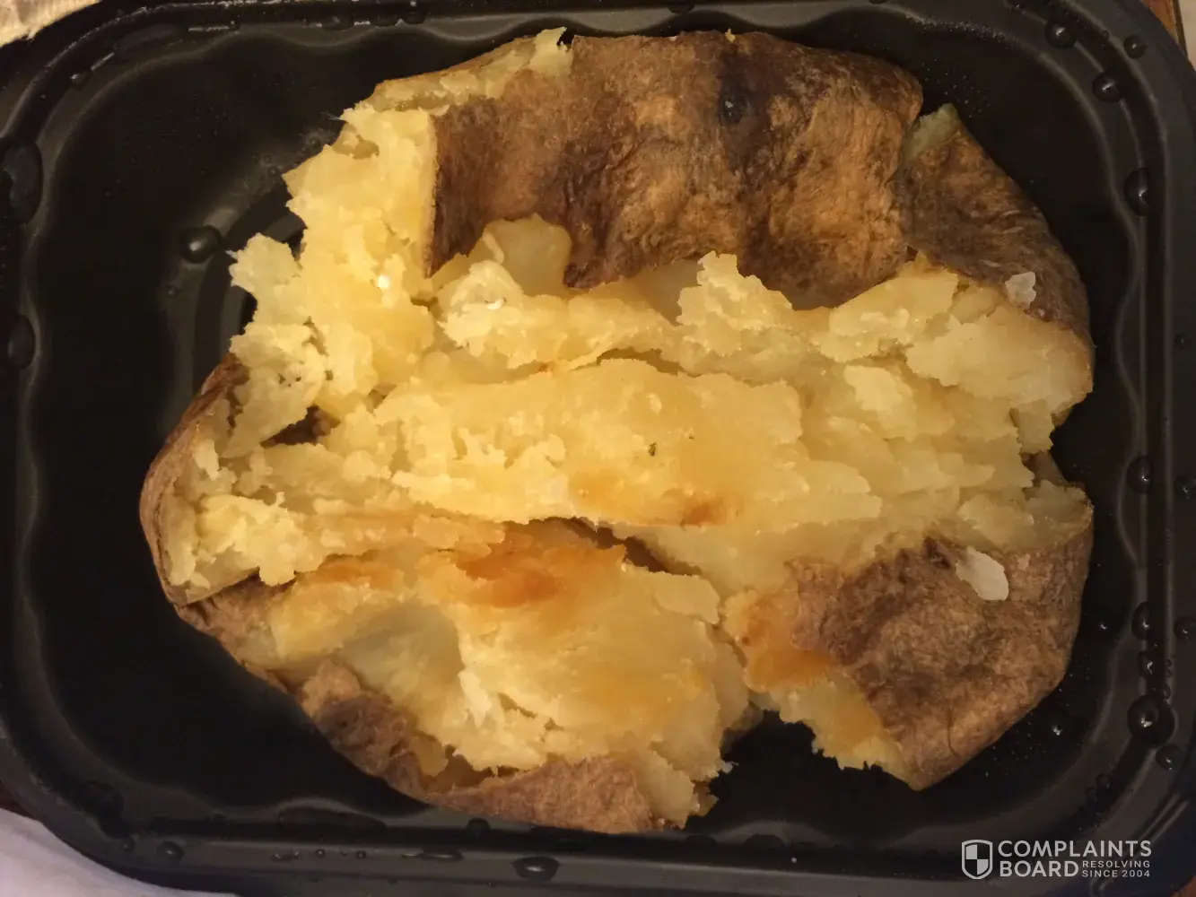 I went to Wendy's drive thru to grab lunch. The worst of which was my baked potato. The inside of the potato was so overcooked the inside was a darker brown than the skin. Not edible!I would be happy to send you a pic.My salad, I asked for no Feta and it was completely covered, the strawberries were mush and a good amount of the lettuce was wilted.