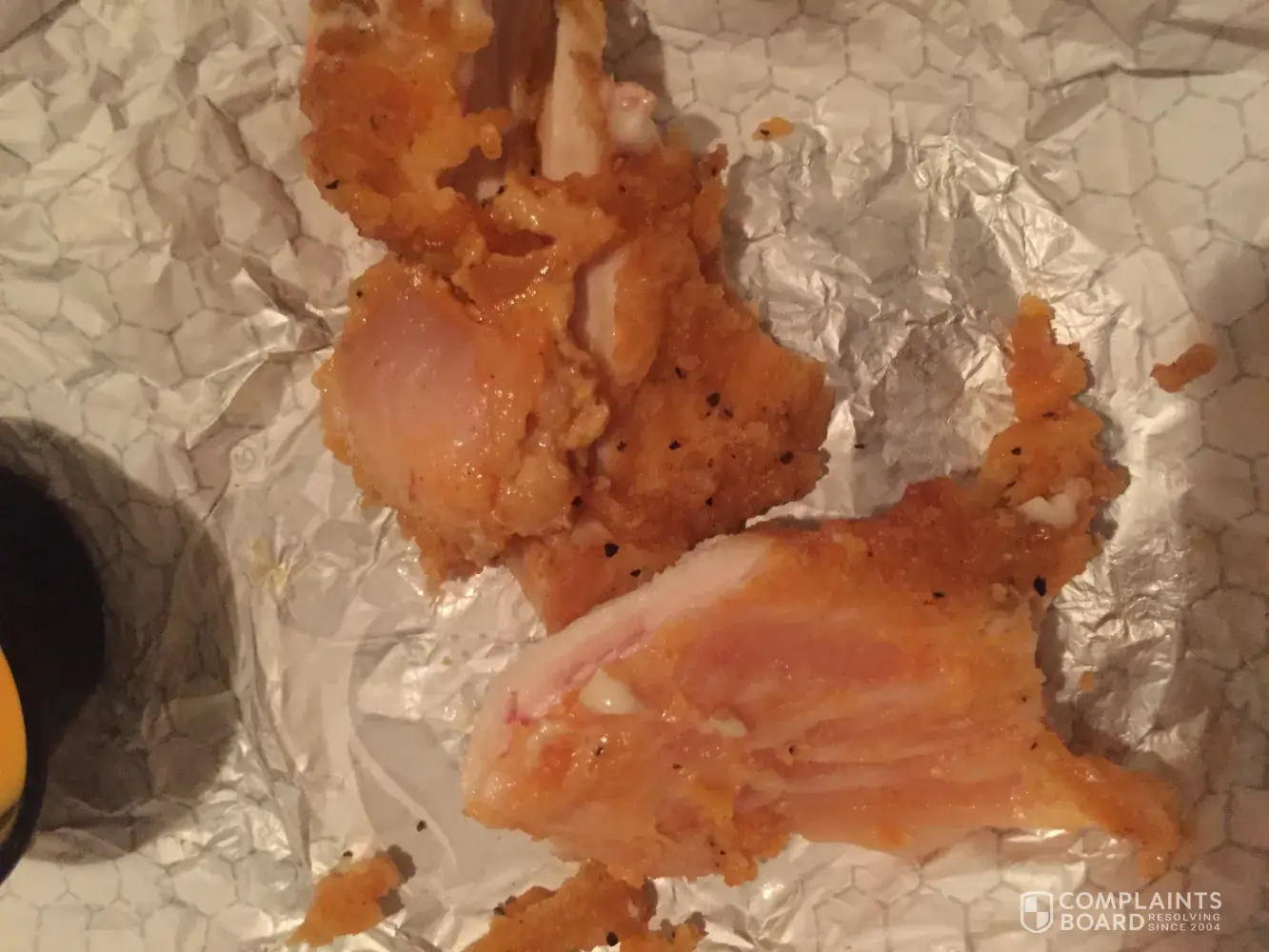 Yesterday 10/04/18 my fiancée and I went through the drive thru and after waiting for about 20 minutes we were told we had to wait "about a minute for the chicken sandwitches" which was fine. When we got home I was eating my food I realized my chicken was raw. Mistakes like that are unacceptable. Someone can get very sick..