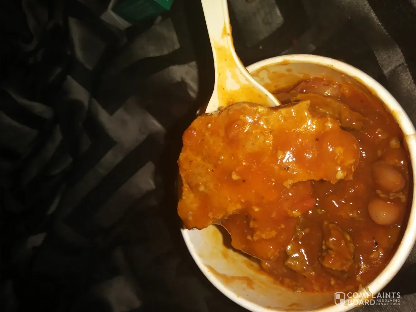 There was buger patty in my chili. And paper on my burger. Discusted!