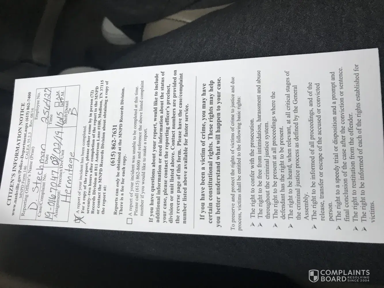 I have filed an accident report with the new jersey state police case# 19-107w.