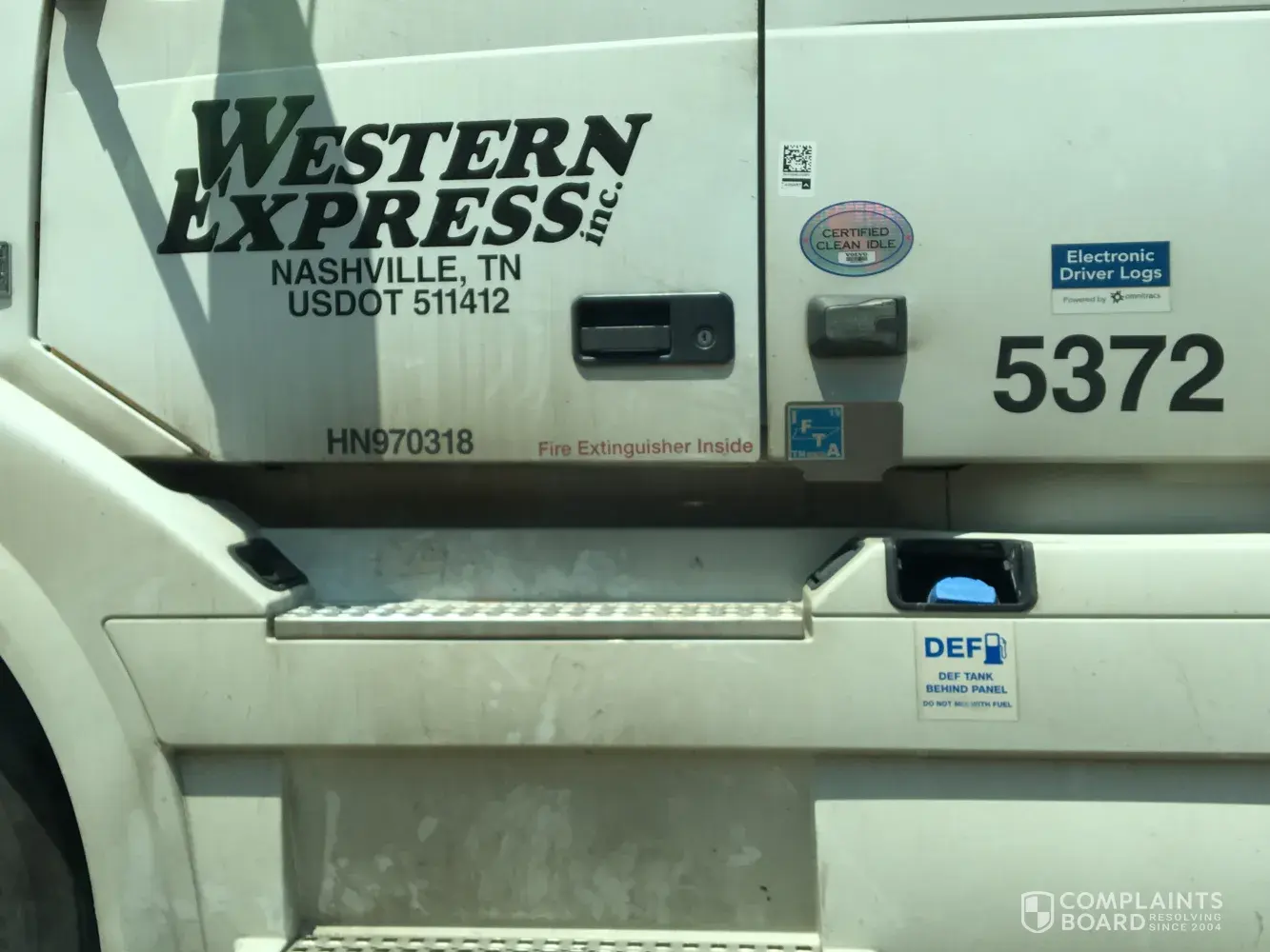 My husband and I just got ran completely off of the road going 50mph by a Western Express driver and I am 9 months pregnant. He did a lane change from the left-to-right lane with no signal and we had no choice but to go into the grass. He didn't even realize until we pulled up next to him and he had his face in his cellphone, we asked him to roll his window down and all he said was "what?"