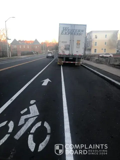 Truck & Trailer are potential hazard to block a lane for non-motor vehicles by Western Express. This company doesn't not pay enough money for a driver to pay for monthly parking. I have 👀 these trucks to park for FREE without payment at a separate business ONLY to be towed by the 3rd day because of stress on the property.